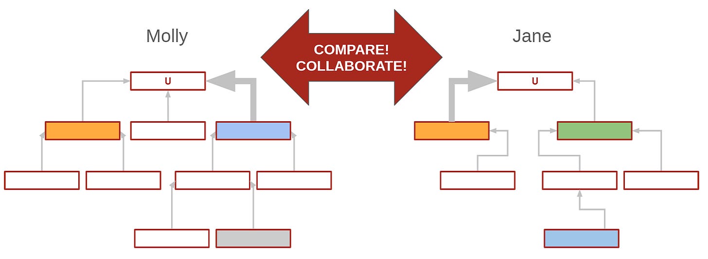 Now Julie and I can look at each other's models and zero in on our fundamental disagreements. For me, the blue crux represents the highest-VOI thing, or the relevant dominant uncertainty; for Jane it's the orange. I'm relatively uncertain whether it will happen or not, and whether it happens has a lot of bearing on my thoughts about U.